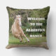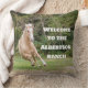 Deje una o varias de estas cómodas almohadas en su cama, sofá de invitados o reclinador para dar la bienvenida a los visitantes de su casa. Un caballo palomino grava la parte delantera de la almohada y el texto de bienvenida se puede personalizar según tus preferencias. La parte trasera es de color marrón neutro, pero también se puede cambiar.