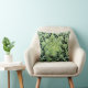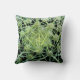 Esta almohada de tiro le toma derecho en el centro de un modelo exótico del cactus. Las espinas dorsales verdes y blancas irradian en un diseño abstracto circular en un fondo negro.