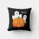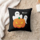 Una almohada de tiro para la decoración de Halloween de tu casa, que capta la esencia de la temporada con una deliciosa calabaza iluminada con fantasmas juguetones, todo muy alegre, Boo!