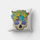 Cojín Decorativo Calavera, cristales, suculentos, sobre fondo claro