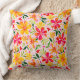 Magnífico diseño de almohadas florales modernas para una actualización instantánea del espacio. Añade sofisticación y arte a tu hogar, oficina o patio con este diseño de marca de una pintura Watercolor original. El fondo rosado tiene flores dispersas en fucsia, naranja, amarillo y rosa con hojas verdes y brotes amarillos también! ¡Un gran regalo para el cambio de hogar, boda y más!