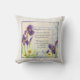 El blanco roto de la cama y la decoración texturizada se combinan con la moqueta de la mugre pálida que hay en la parte trasera para una elegante y bonita decoración casera que arroja almohada. Este diseño se inició con un verso original de Audrey Jeanne Roberts y se combinó con su arte acuarela de flores de iris morado fresco de su propio jardín, emparejado con libélulas, patrones de paisajes y flores de primavera, la obra de arte se combina con letras a mano en caligrafía para el diseño terminado. Derechos reservados.