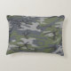Patrón de camuflaje arroja almohada en gris oscuro y verde descolorido.