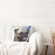 La cara color de gamuza del barro amasado sobre una pintura hued azul tiene gusto de la almohada de tiro de los amantes del perro del fondo