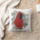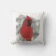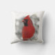 Esta almohada de tiro tiene un cardenal rojo brillante. ¡Él es verdaderamente el rey de los pájaros traseros! Aquí está encaramado en un riel nevado comiendo semillas negras de girasol de aceite mientras la nieve invernal gira a su alrededor. La imagen se repite en la parte posterior.