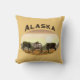 Dos toros de caribú luchan durante la rutina de caída en el extremo norte mientras el sol se pone en el fondo. También aparece el texto "Alaska".