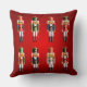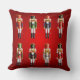 Esta almohada roja festiva adornada en cada lado con dos filas de los soldados de juguete de nuez del cascanueces en uniformes coloridos del húsar es el acento ideal que alegrará cualquier sitio durante las vacaciones. También hace un regalo perfecto del navidad para la familia y los amigos.