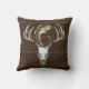 Caza y diseño de pesca con fondo de madera oscura. Gran cráneo de ciervo de ciervo con gran boca que salta por señuelo de pesca.