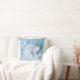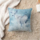 Una almohada con la imagen de un venado majestuoso en invierno. Un fondo azul y helado filtrado le da a esta foto un aspecto frío de invierno con un toque mágico. Un ciervo noble se alza sobre una colina con pinos de invierno al fondo.