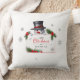 The throw pillow features a cheerful snowman holding a sign with Christmas and New Year greetings against a clean white backdrop. It would make a perfect home decor gift for both kids and adults, adding a festive touch to any household during the holiday season.