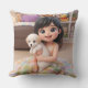 Cojín Decorativo Chibi Girl Hugging White Puppy Dog Throw Pillow