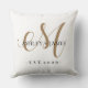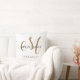 Almohadón de boda al aire libre dorado chic y moderno con monograma, con sus nombres y año establecido en negro, elegante letra manuscrita caligráfica y tipografía clásica con un monograma M dorado sobre fondo blanco. Simplemente agregue sus nombres, monograma y año debajo. Diseño elegante y decoración perfecta para la mesa de boda. ¡Contácteme para otros monogramas a través del chat de la tienda! Estamos encantados de ayudarlo a hacer que su boda sea el día más hermoso. Diseñado exclusivamente para usted por Happy Dolphin Studio.
