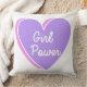 almohada de chorro de chica de corazón con un ilustracion tipográfico en forma de corazón en color púrpura y rosa con un diseño de comillas que muestran las palabras "PODER CHICA" en color blanco sobre un fondo blanco.