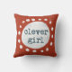 Un fondo rojo audaz muestra la frase "chica inteligente" en el centro, encerrada por un anillo de puntos blancos alrededor de un oval blanco más grande. El diseño juguetón y simplista enfatiza el mensaje central.