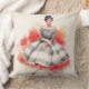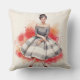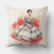 Una almohada decorativa de tiro con adorno de un chica retro sentado.