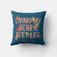 CHRISTIAN Berries Cojín decorativo ABUNDANTE de VIDA en AZUL con PERSONALIZABLE BIBLIA VERSE. Este diseño muestra una serie de bayas - frambuesa, gooseberry, fresa, arándanos, arándanos, arándanos, arándanos, moras y gojiberry entrelazadas con las palabras "VIVIENDO MI MEJOR VIDA". Esta frase divertida se refiere al popular verso de la Biblia Cristiana de Juan 10:10 que habla de LA VIDA ABUNDANTE y es un giro cristiano en la popular frase FEELING BERRY BUOD. La referencia de la Biblia es PERSONALIZABLE para que puedas PERSONALIZAR con tu nombre o la redacción de tu elección. Este Cojín decorativo de bayas cristianas sería un gran regalo para tu fan cristiano o mamá/papá. Hay otros colores disponibles.