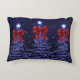 Cojín Decorativo Christmas Sparkling Trees Navy Blue Faux Red Bow