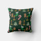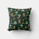 Festive Christmas pattern with gingerbread men, candy canes, festive candles, and green snow-capped Christmas trees.