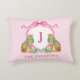 This Christmas pillow has a preppy grandmillennial design featuring two leopards wearing Christmas wreaths with a monogram letter in the center. Text reads "to: from:" You can personalize with your initial and name.