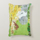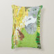 Una almohada con una hermosa escena forestal que incluye una cierva y un cervatillo bebiendo de un arroyo cerca de una cascada. Obra original de W.B.