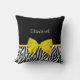 Una almohada blanco y negro de moda del modelo del estampado de zebra con una cinta amarilla linda atada en un arco femenino. Personalice añadiendo su nombre a este diseño elegante seguro para poner en evidencia el fashionista en un chica. Imagen impresa del plano, cinta no real.
