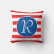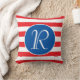 Suavizar con este círculo azul monograma | Cojín decorativo de franja roja y blanca. Personalízalo con tu inicial. Hace una gran idea de regalo para un cumpleaños del 4 de julio.