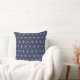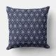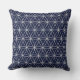 Almohadón con hermosos círculos de flores de plata sobre fondo azul. Este diseño es conocido como la flor de la vida y es venerado por las principales religiones y muchas culturas. Significa que todos estamos interconectados.