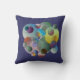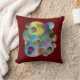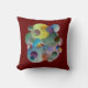 almohada divertida y colorida llena de color, círculos y anillos con fondo azul profundo y rojo intenso en la parte posterior. los colores de fondo se pueden cambiar a cualquier color que prefiera.