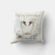Esta hermosa almohada decorativa presenta dos cisnes de amor con sus cabezas mirándose y formando un corazón. El fondo tiene suaves pinceladas de acuarela, copos de nieve y regalos. El mensaje "Felices Fiestas" se puede cambiar al mensaje que elijas o nombres. Idea de regalo ideal para recién casados, amigos o familiares.