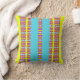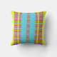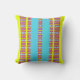 Its vibrant turquoise center framed by zesty yellow and colorful patterned bands creates a bright and uplifting design. Inspired by citrus tones and tropical warmth, this cushion brings joy and movement into any space.