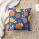 Un patrón vibrante con naranjas, limones y pomelos vivos en un fondo azul profundo. Este diseño, acentuado por hojas de colores y rodajas de cítricos, evoca un ambiente tropical fresco y estridente.