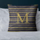 Cojín Decorativo Clásico Blue Gold Striped Monogramado