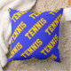 Cojín Decorativo Classy Fun Retro Bright Yellow TENNIS Text On Blue