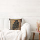 Raven sobre el fondo de las baldosas de piedra. Reloj de los engranajes alrededor del borde