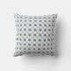 This accent throw pillow is shown with a lovely navy blue, grey and white color coastal theme starfish print.