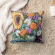 Este 16" x 16" almohada de tiro ofrece una pintura floral de acrílico original de Becky Schultea, "el ramo del cubo del Wildflower" que incluye un girasol alegre,