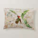 ) El colibrí verde y marrón de A con una garganta roja vuela cerca de una planta tropical del tweedia con las flores azules claras, en un fondo grisáceo del grunge del vintage con remolinos del oro y siluetas florales. El ilustracion del colibrí se refleja - haciendo frente a la dirección opuesta - en la parte posterior. A juego alrededor y almohadas de tiro cuadradas también disponibles.