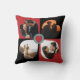 El día de San Valentín personalizado lanza almohada con cuatro fotos en forma de corazón con fondo rojo y negro.