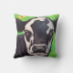 El diseño llamativo de la vaca con el fondo verde se ríe este la almohada para cualquier punto casual. El diseño bovino fue creado de una pintura.