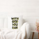 Este diseño de almohadas de lanzamiento tiene las palabras "Con Dios que puedas" en un estilo de burbuja impreso más letras negras y contorno de sombra amarilla con un estilo de tipografía en este tema basado en la fe. Esta almohada está hecha con tela de cuchillos simple de alta calidad nuestras almohadas son suaves y sin arrugas la cubierta es lavable por máquina.