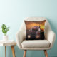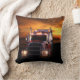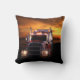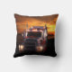 La conducción del camión sirve la almohada, el camión grande, semi el camión, el aparejo grande, el policía motorizado 18 con un levantamiento dramático o el sol poniente en el fondo