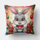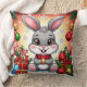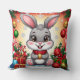 Conejo de dibujos animados adorable sentado entre nieve, adornos y regalos, que evoca alegría navideña con colores vibrantes y un entorno invernal festivo. Perfecto para tarjetas de salutación de temporada y diseños navideños.