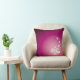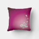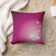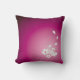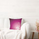 Una almohada cuadrada con un ilustracion de dos conejos de nieve, dos flores de sakura y cuatro pétalos de flores de sakura sobre un fondo morado en la esquina inferior derecha, dejando espacio para el texto a la izquierda.