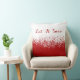 Una almohada de copo de nieve roja y blanca con texto: Que nieve. Diseñado con copos de nieve blancos en un fondo rojo y blanco para alegrar tu hogar durante la temporada de Navidades. El reverso incluye el texto: Dejar que nieve, que nieve, que nieve.