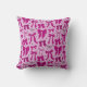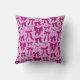 Coqueta y almohada caprichosa con ilustracion dibujado a mano de arcos y corazones magenta.