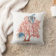Cojín Decorativo Coral rojo con peces tropicales, acuarela angelífe