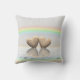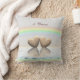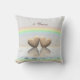 Almohada con mi obra de arte original de dos corazones de madera flotando en el agua bajo un arcoíris. El texto dice "5 Años".