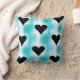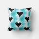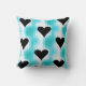 Este diseño gráfico, parece brillar, con corazones negros, sobre blanco, cuadrados-mostrados en un, abstracto, tablero de ajedrez, patrón de, turquesa, sombreado de azul.