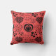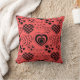 Esta almohada de tiro tiene el diseño de San Valentín de repetir corazones con diferentes gráficos dentro de un campo de rojo.