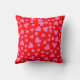 Un modelo de corazones lanzados cubre esta almohada. El frente tiene corazones rojos en un fondo rosado. La parte posterior tiene corazones rosados en un fondo rojo.